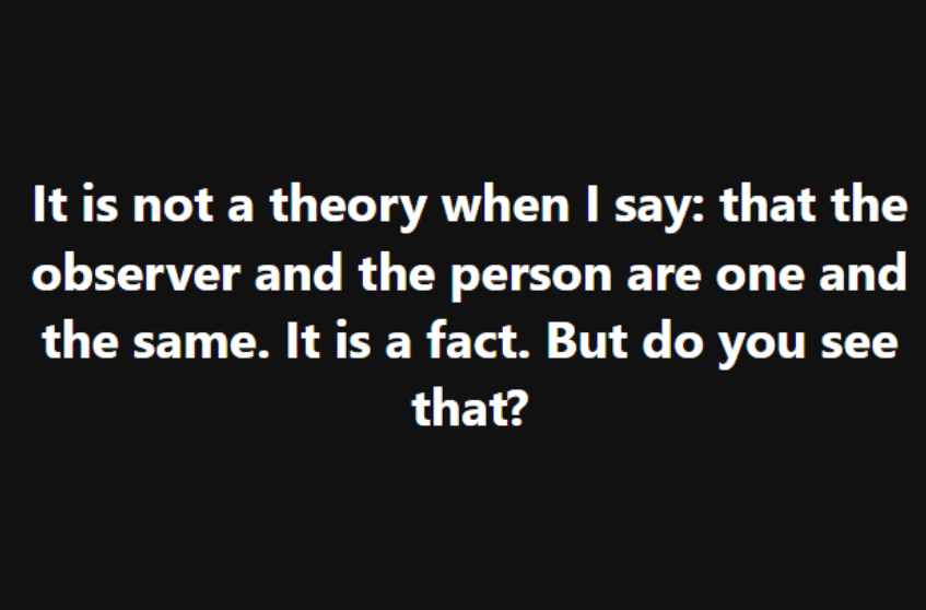 It is not a theory when I say: that the observer and the person are one and the same. It is a fact. But do you see that?